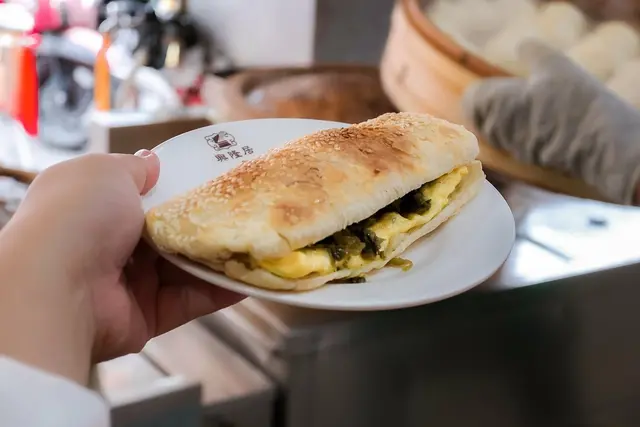 聽聞燒餅真的非常厲害,果真ㄟ,一摸就知道好酥喔,咬下去好薄酥還會掉穴穴,酸菜帶點甜是充滿著濃濃眷村味,配在一起真得超有滋味,我會願意為了這款再來。