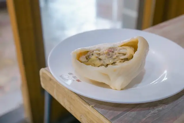 內餡包入韭菜混合高麗菜,皮略厚,是可以想像的味道,但也是不錯的。