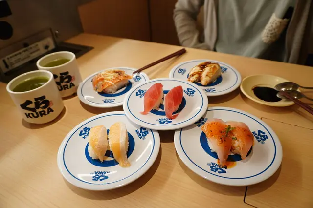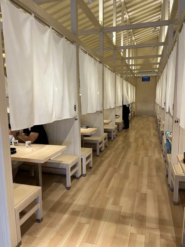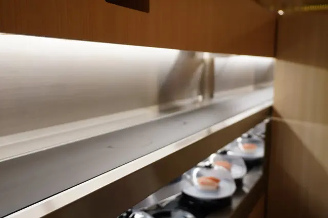 和一般藏壽司比起來, 可以看到這邊的桌子更有隱私性