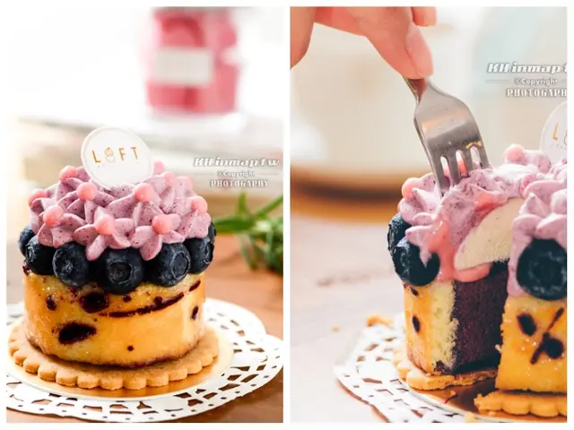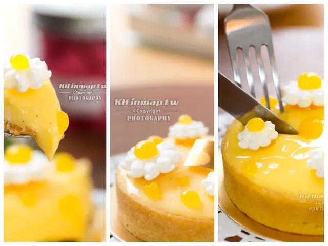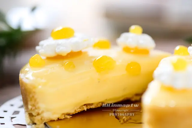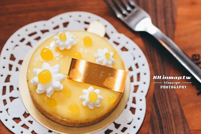 自製的藍莓醬口味蛋糕體,擺上多顆新鮮藍莓、擠上藍莓鮮奶油與水蜜桃奶醬,如捧花概念的個人小蛋糕,是一款細膩經典的藍莓代表作;而金黃色系的蕾夢塔,是師傅費工熬成的檸檬香草籽奶餡,上頭點入檸檬棉糖與葡萄柚果醬,開啟了忠於的酸甜滋味的味蕾,刀叉切開之後,那垂涎欲滴的檸檬餡,會令檸檬控大為著迷!