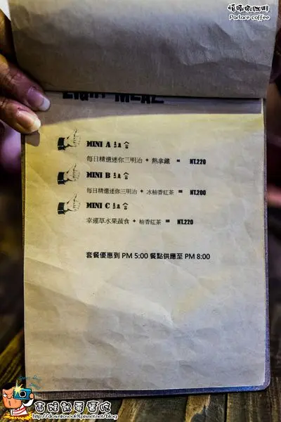 飲料方面除了有咖啡類,還有茶類可以選擇,餐點方面有提供小三披薩吐司、迷你三明治、手作單品麵包與手作蔬食。甜點方面有每日精選甜點、黑手黨私房點心、芝麻/花生香蕉土司與司康,鬆餅方面選擇也不少,有楓糖鬆餅、焦糖香草冰淇淋鬆餅、香蕉巧克力冰淇淋鬆餅、鮮果冰淇淋鬆餅與冬季限定的草莓冰淇淋鬆餅。