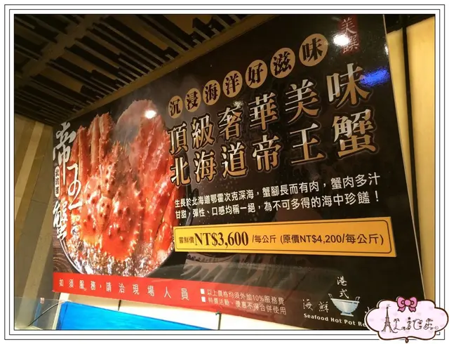 一進門就看到大大的海報: 北海道帝王蟹 NT3,600元/每公斤!!!!