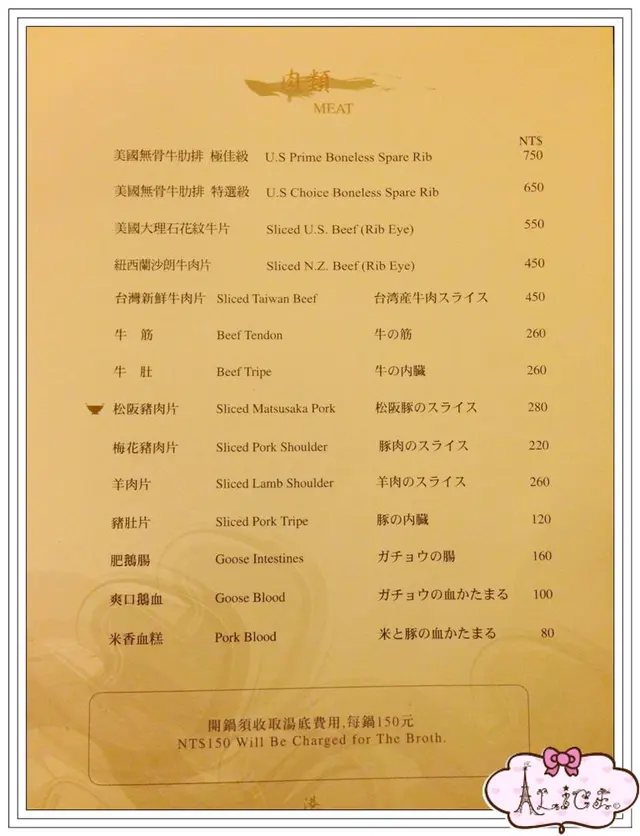 肉類只要不點到頂極牛肉的話~其他價位也跟一般火鍋店不相上下的!!!!!