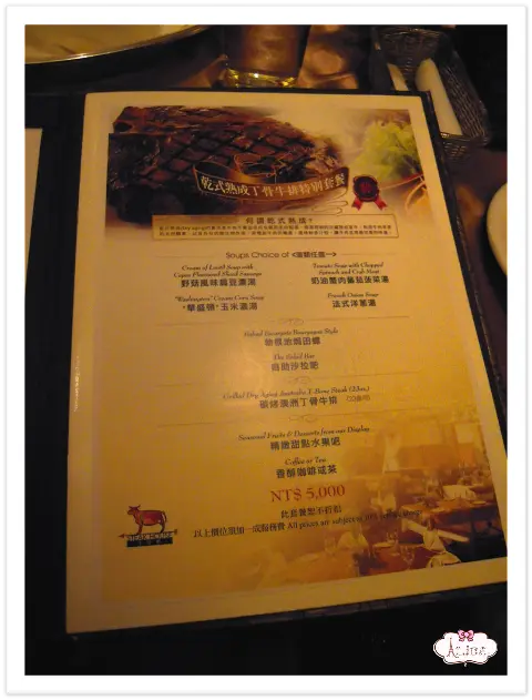 乾式熟成丁骨牛排特別套餐 NT5000元。