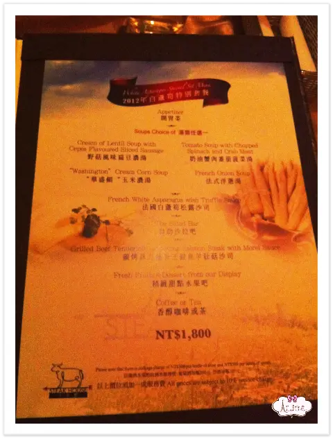2012年白蘆荀特別套餐。 法國白蘆荀松露沙司 。