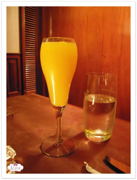餐廳為了表達欠意,特別送了我們一人一杯小小柳橙汁~~~