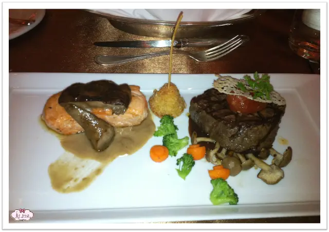 2012年白蘆荀特別套餐。 碳烤菲力搭帝王鮭魚羊肚菇沙司。