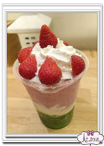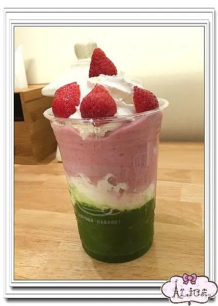 酸酸甜甜的草莓冰沙跟底下的抹茶攪拌後比較好喝耶!!!!