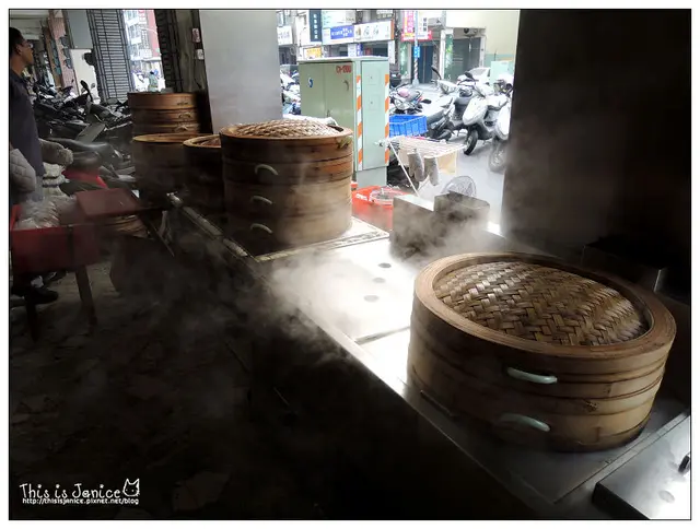 店家外頭的騎樓就擺放著一籠籠的湯包