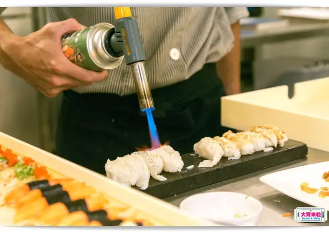 師傅正在使用火槍炙燒握壽司,不斷飄出魚油融化的焦香味,超級誘人!