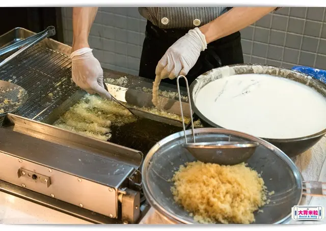 師傅不斷在油鍋來來回回炸著滿滿的肥嫩大蝦!