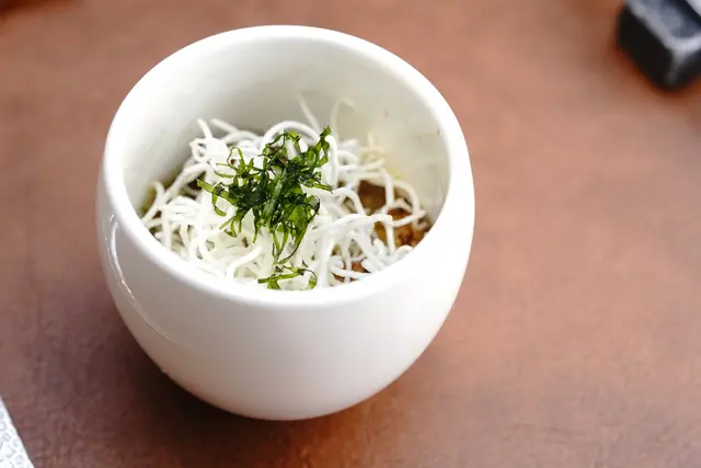源自於主廚的爺爺很喜歡日本食材也生活在日治年代,希望透過這道料理去紀念他非常喜愛的爺爺。