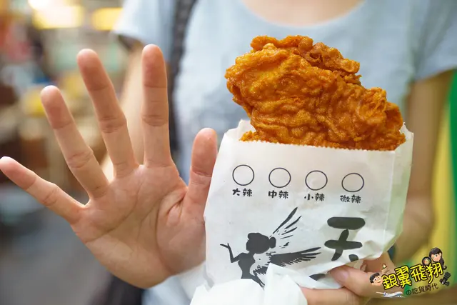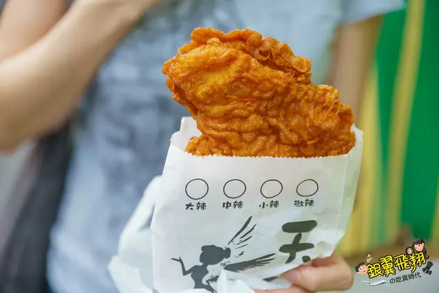 【天使雞排】雞排口味只有兩種原味天使與火辣天使都是厚切(不切),火辣天使可以選擇辣度(大辣。中辣。小辣。微辣)費用NT$70元,打卡按讚可以折NT$5元,目前也有推出紅茶拿鐵搭配雞排的選擇。