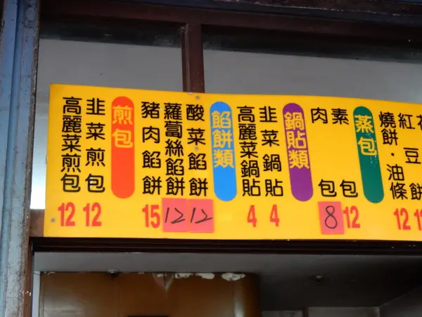 梅干菜肉包 12元 韭菜煎包 12元 咖哩餃 ?元(未標價)
