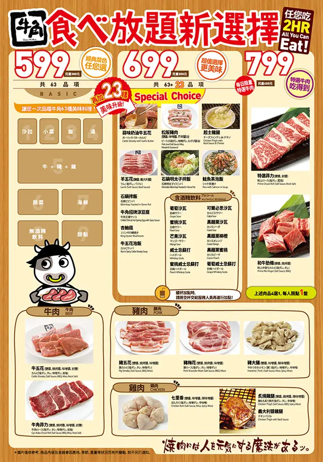 吃到飽共有三種價位,基本上我們是覺得699+10%這個價位是最划算的啦