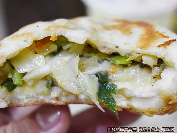 內餡包有:高麗菜、韭菜、紅蘿蔔、豬肉、冬粉、青蔥、蝦米,