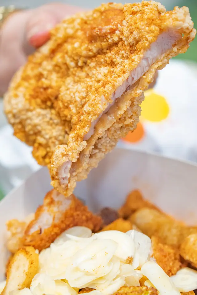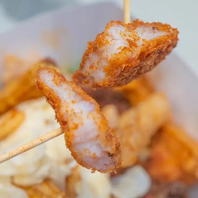 肉質鮮嫩多汁,吃起來酥香不油膩,放冷味道也不走味。其他高達50種的肉肉、蔬菜炸物,