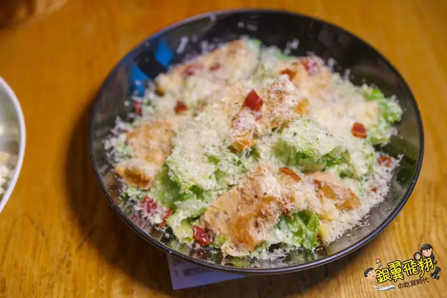 嫩煎雞胸、蘿蔓生菜、培根、烤麵包丁、帕瑪森起司、凱薩沙拉醬,這一盤也很豐盛口感方面層次呈現頗有好市多沙拉口感,而且我頗愛店家的凱薩沙拉醬。