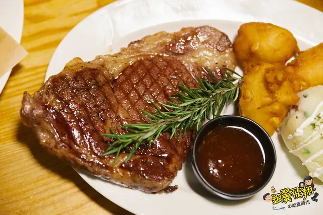 充滿著豐富油脂香與肉汁,外表烙印的焦香吃原味才是美式料理的精髓,還有附贈小盅焗烤通心粉和花椰菜沙拉吃起來也很清脆甘甜。