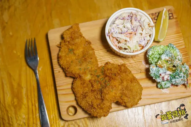 使用七盎司澳洲和牛切成薄片炸,相較外面的炸牛排厚度稍嫌不同,比較類似炸雞排的厚度,比較偏德式風味的炸牛排。