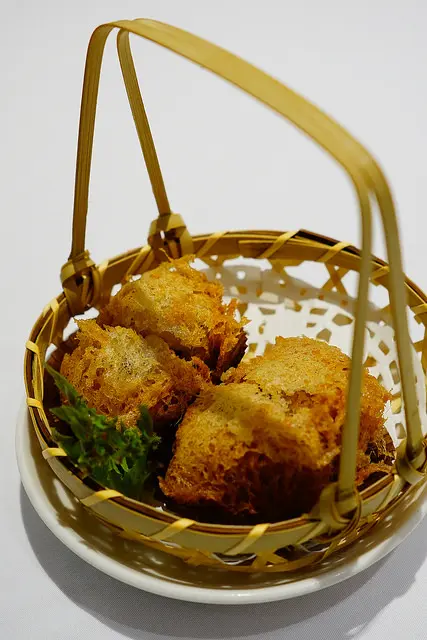 高雄美食~N訪名人坊 高檔粵菜午餐980元起 堪稱台灣CP值最高的米其林星級餐廳 下個月即將推出的芒果流沙小河豚可愛又吸睛先來介紹一下我們足感心的小茜茜送來今年漢來好吃的2016愉悅年節禮盒一收到就讓人愛不釋手的古典緞面三層錦盒,很有年節氣氛的花朵與金魚,心想吃完後我就要拿來當我的手飾盒第一層是南棗核桃糕、牛軋糖、蜜糖可可和帕馬森起司餅,帕馬森起司餅鹹鹹甜甜的口味我很喜歡,蜜糖可可是香脆的杏仁裹著巧克力粉,微苦的滋味帶點成人風不過最令我大吃一驚是第二層的國宴旺來酥,本來想說不過就是一個普通的鳳梨酥吧!沒想到我吃完一個立馬賴了小茜說你們家的鳳梨酥真他媽的好吃,好吃到都想飆髒話的好吃