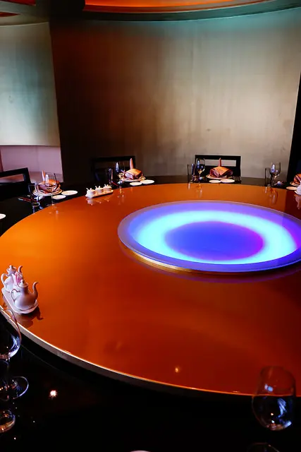 這個轉菜的旋轉桌竟然是自動的耶!(我是不是很俗)會慢慢自己旋轉,還有七彩霓虹燈,把燈光弄暗後好有氣氛,每間包廂可以容納的人數不同,像這間京都廳的人數最少,可以坐12個人如果家裡有小朋友的也不用擔心,英國Brother Max Soop時尚兒童餐桌椅幫您伺後你們家的小佛爺,這台貴婦友人家裡有,聽說要價17000,流線的造型害我也想要坐上去了