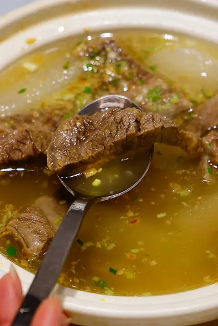 蘿蔔甜牛腩嫩,而且蘿蔔和牛腩是分開熬煮的,這樣熬煮出來的湯頭清而不濁,味道鮮美又不油膩,真是好喝極了,蘿蔔和牛腩都很入味,一入口就化開了,雖然已經吃的很飽足,卻依然忍不住的多喝了兩碗湯