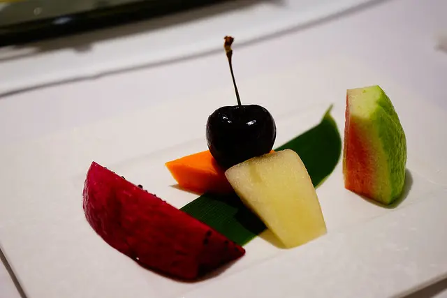 主廚還沒想到要取名為什麼,我們就先亂取名為芒果流沙小河豚
