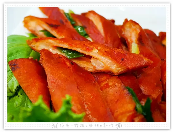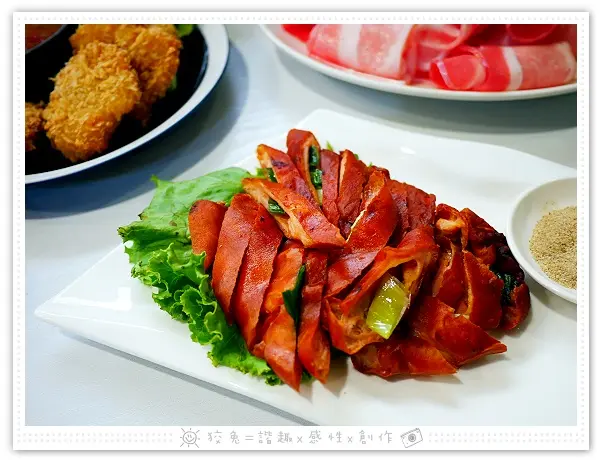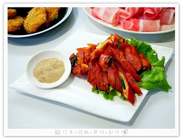 狡兔一連嗑了好幾片,這盤肉片的數量對我倆來說綽綽有餘!
