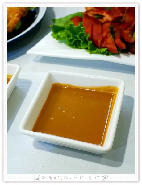 小份有五塊,附搭泰式甜辣醬!剛送上來呈現乾爽狀態,而炸物不可能立刻完食,狡兔稍晚吃下最後一塊,發現外衣仍然很酥脆!老闆炸功了得!