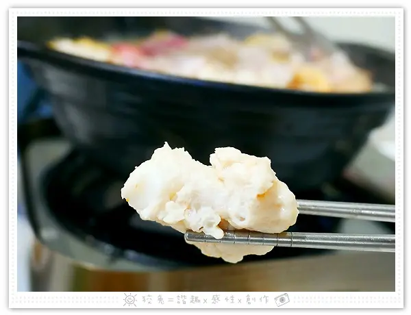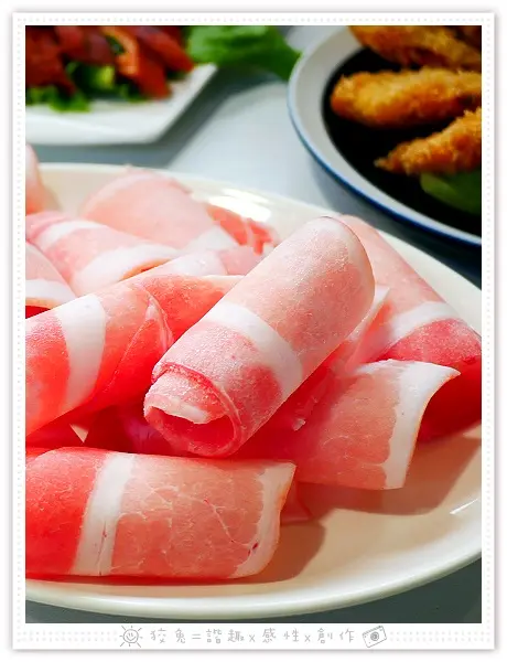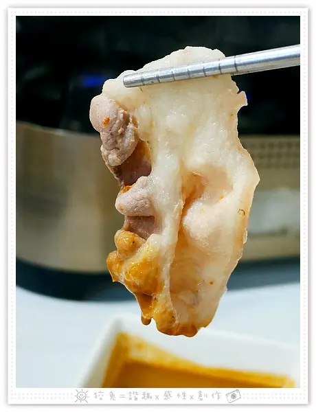 攤開白肉片,發覺是厚切!平常在火鍋店罕見的規格!