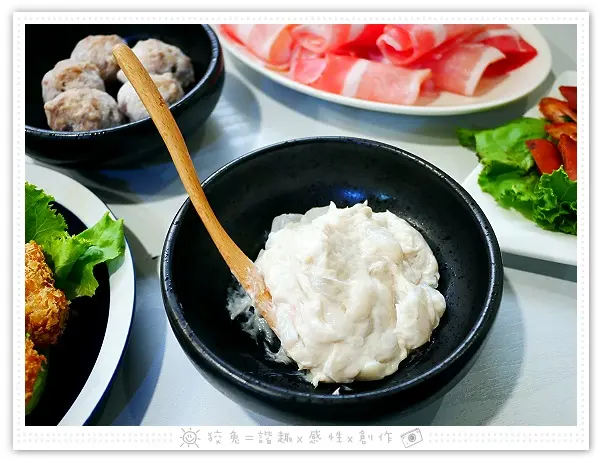 隨鍋附上的自製特調沾醬,乍看以為是甜味胡麻醬,豈料層次感豐富!老闆將芝麻醬、豆瓣醬、豆腐乳等醬料結合在一起,激盪出鹹香好味道,狡兔不由得一沾再沾!