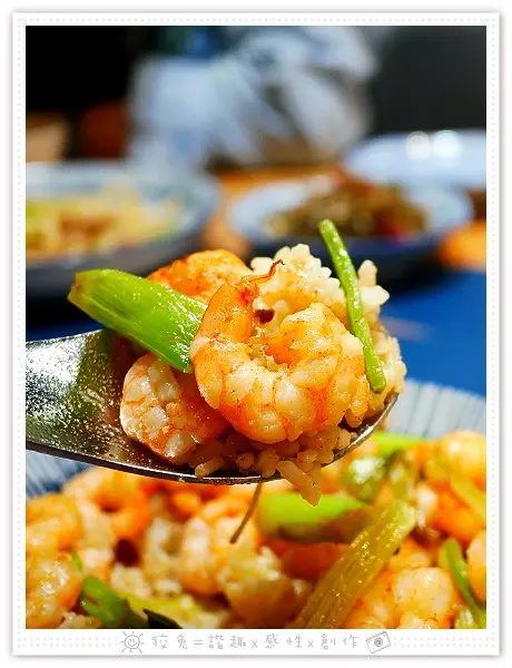 網路評論所言不假,蝦仁飯確實很大一碗!根本就是用碗公來裝!飯量驚人,難怪店家要額外準備空碗盤給顧客分食!底下的白飯澆淋了適量醬汁,味道不過度鹹重,爽口不油膩。