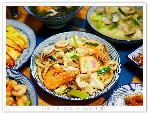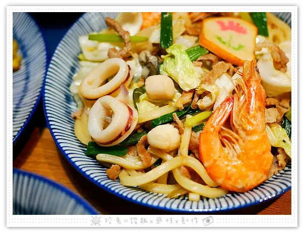 後來想想,狡兔點乾炒類也挺好的,可以讓觀眾朋友們一目了然!海鮮用料包括蝦子、小卷、干貝、蚵仔,輔以魚丸、魚板、豬肉絲、高麗菜等食材,作風十分海派!