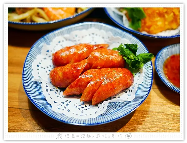 外面餐廳罕見的飛魚卵香腸,若不點它實在說不過去!兩人同享剛剛好!