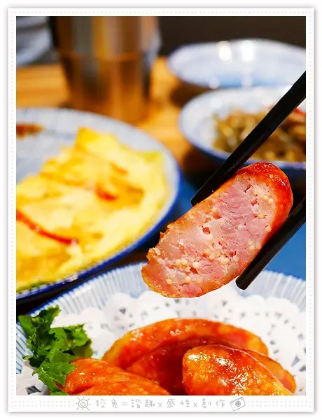 香腸灌得紮實也煎得漂亮,香氣四溢好迷人!裡頭的飛魚卵增添口感變化,咬下去嗶啵有趣!