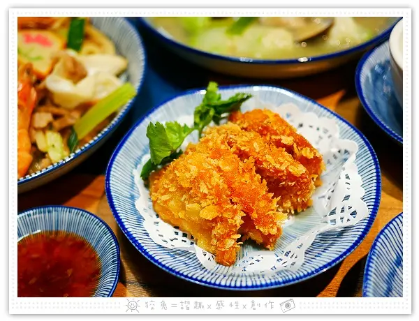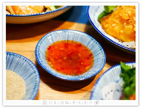 炸花枝蝦排隨餐附上泰式甜辣醬,真是最佳拍檔!