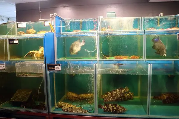 九鼎蒸霸不以藥水的方式來呈現海水,而是真的買進海水來提供這些海鮮環境