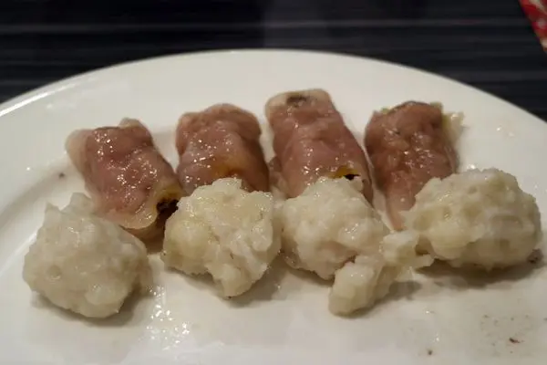 沒想到裡面包覆著魚漿的肉捲吃起來沒腥味,就像豬肉捲一樣的感覺