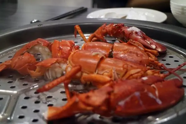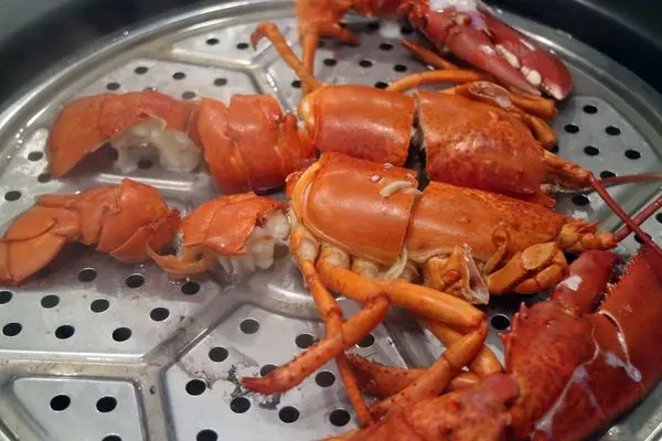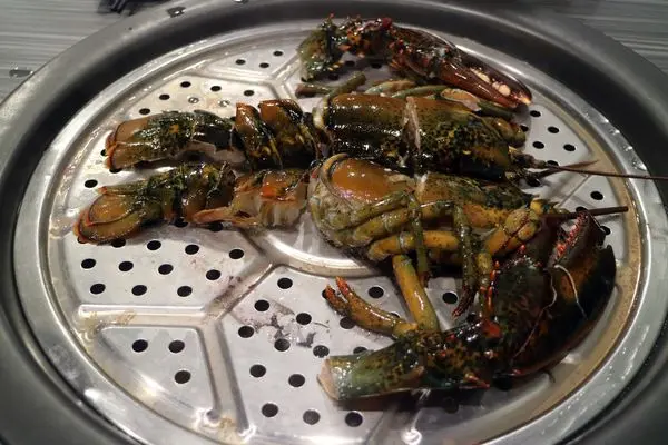 原本生龍活虎的龍蝦被大卸八塊,接著被蒸煮