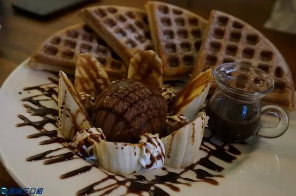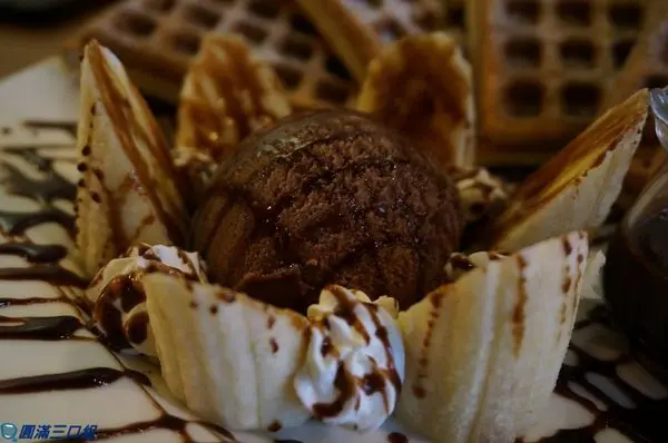 這是『香蕉巧克力冰淇淋鬆餅』!