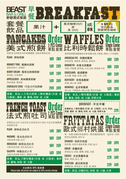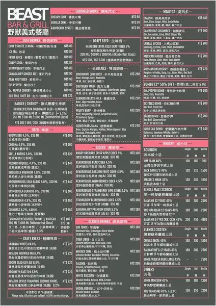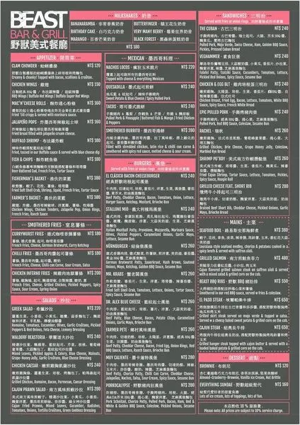 BEAST · Bar & Grill · 野獸美式餐廳 2016 完整菜單 (English Menu Here)