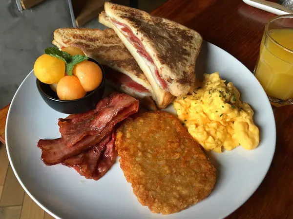 果汁、配菜薯餅、蛋(炒蛋/太陽蛋),都是可以客製化選配的,套餐裡面有培根、莫札瑞起司等