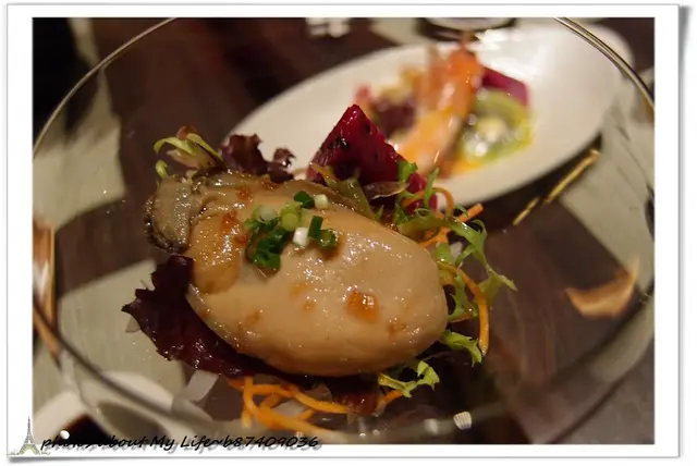 同樣是生蠔但因為先用酒醋醃過所以口感較硬 就像有先微微乾煎過卻沒有油味