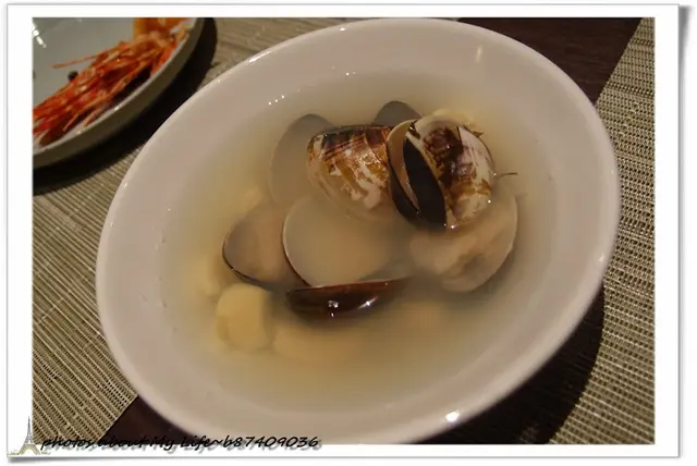 這時已經飽到不想動湯品 所以只挑裡頭的蛤蠣肉吃 猜想餐廳有先挑選過 每顆蛤蠣肉又大又飽滿