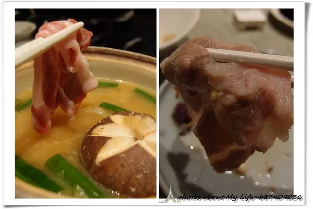 旁邊那朵頗具厚度的大香菇口感超像軟嫩的雞肉 吸飽味噌鍋的精華和豬肉油脂咬下還會噴汁