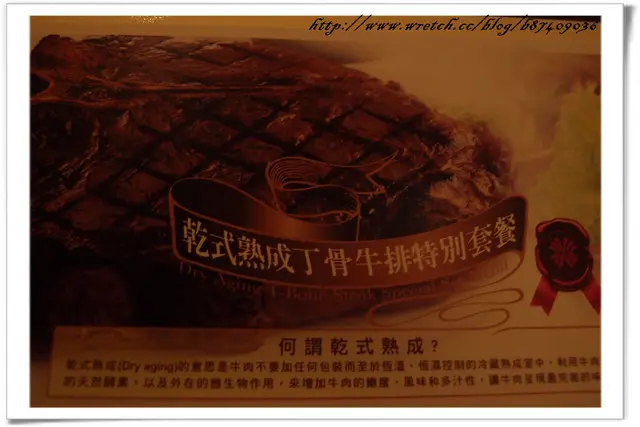 此外店家還有"乾式熟成丁骨牛排特別套餐"