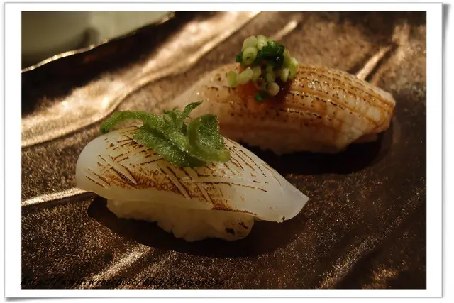 壽司上的魚片切的也是頗有厚度 墨烏賊口感偏彈韌 鰤魚則軟嫩富有油脂 都好吃!