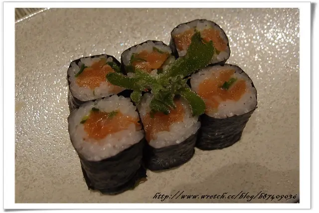 旨味套餐的壽司則是鮭魚捲壽司 裡面雖然是鮭魚末不過還是吃得出豐厚滑順的油脂