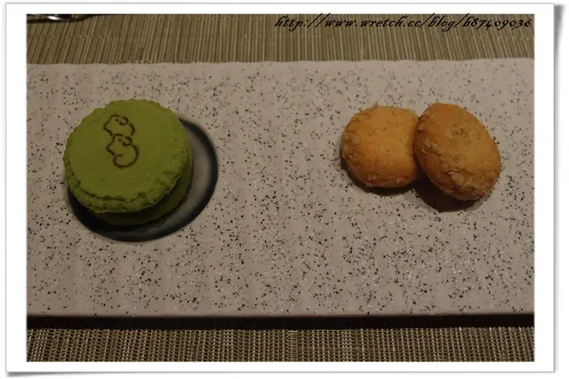 這抹茶雪燒乍看還以為是馬卡龍 切下去發現這切不斷的表層Q韌到就像麻糬+海綿蛋糕的綜合